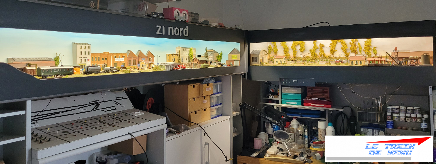 – Module 1 : « ZI Nord ». Thème : zone industrielle vers 1960 avec petite gare de desserte locale et trois voies embranchées. En cours de finition.