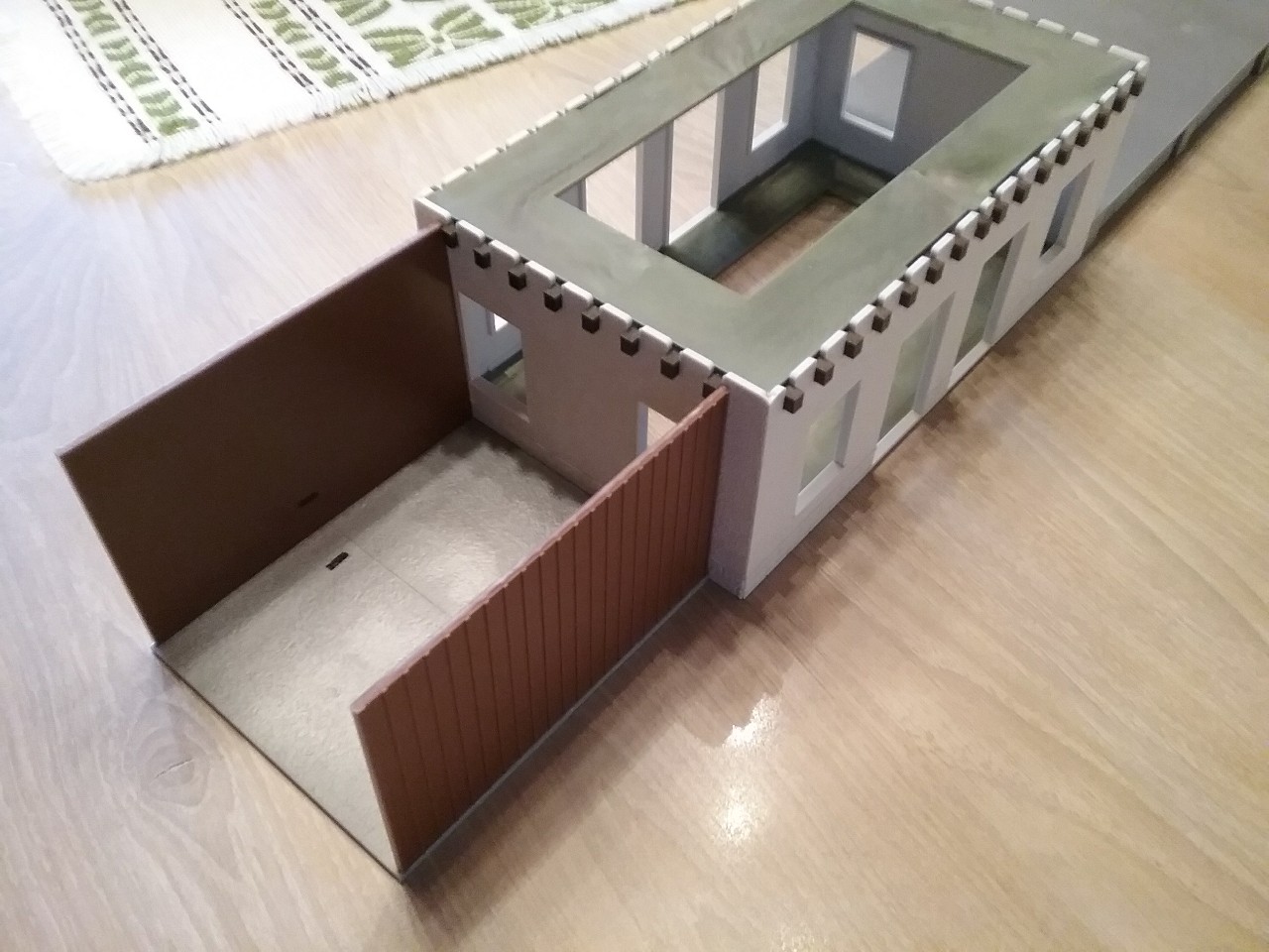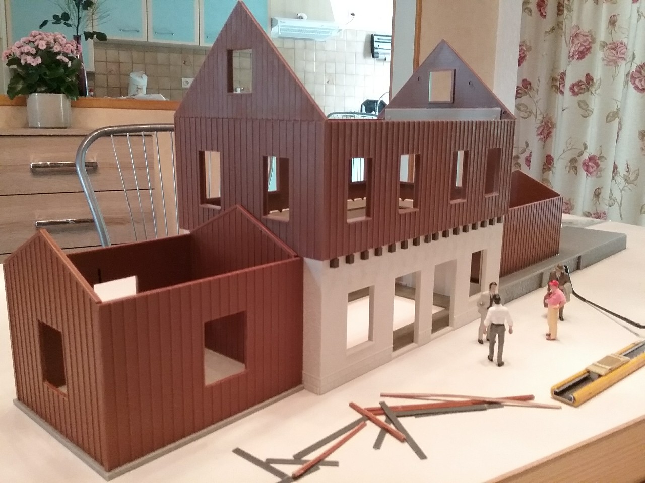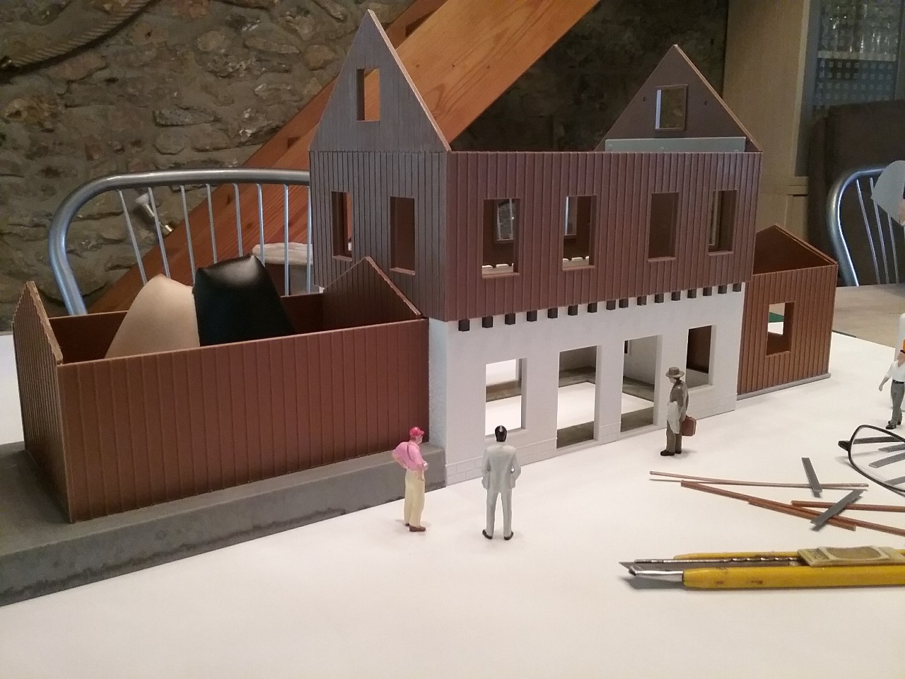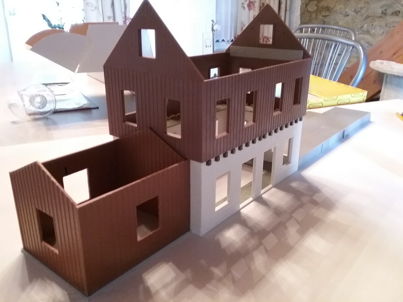 Viennent ensuite la découpe et la préparation des éléments de l’annexe gauche, puis la découpe des emplacements des fenêtres