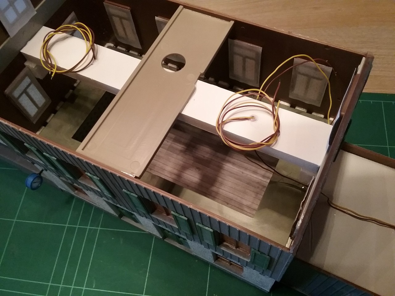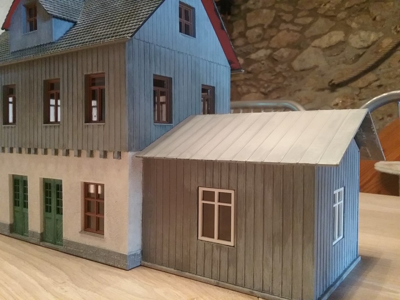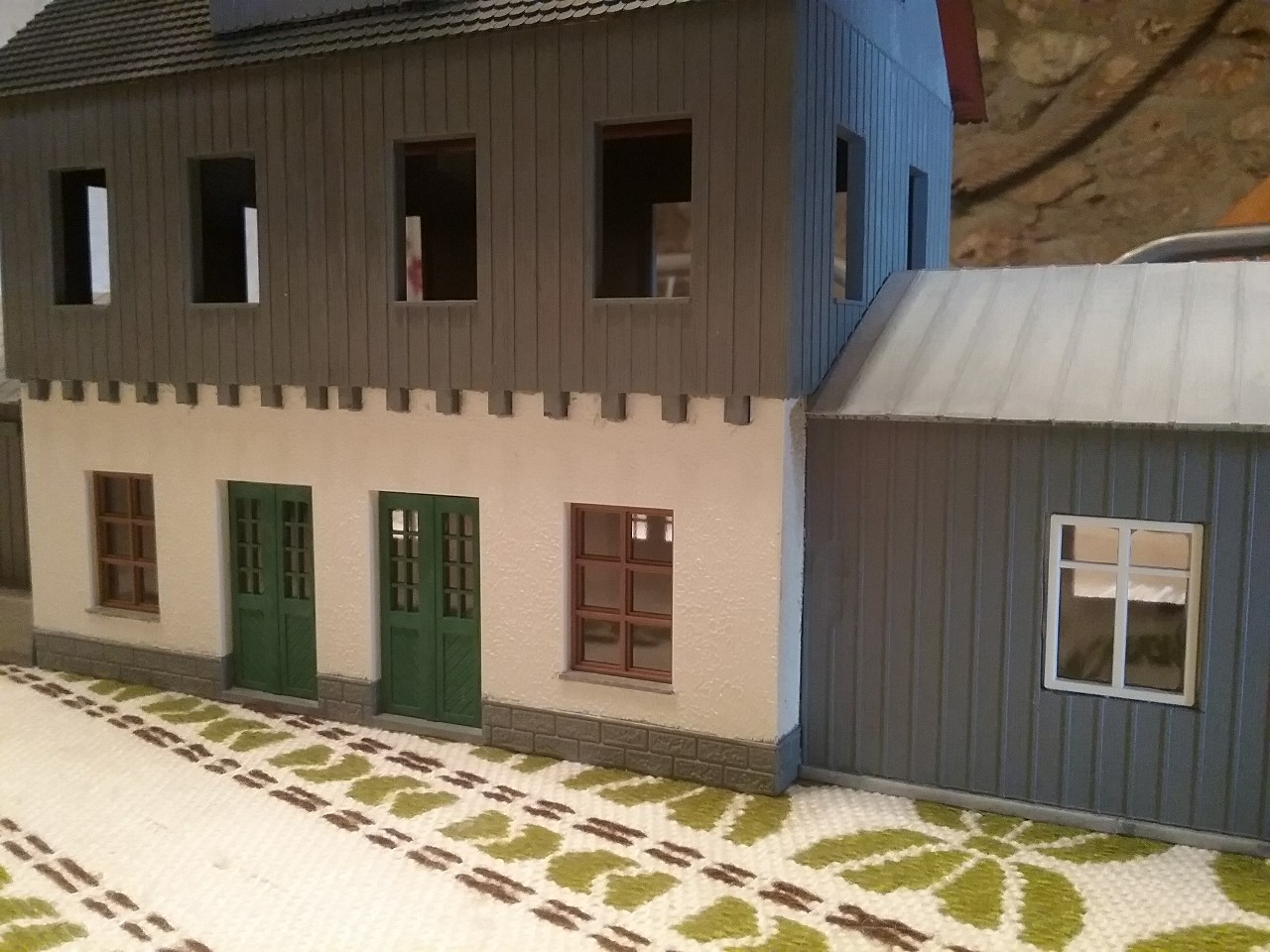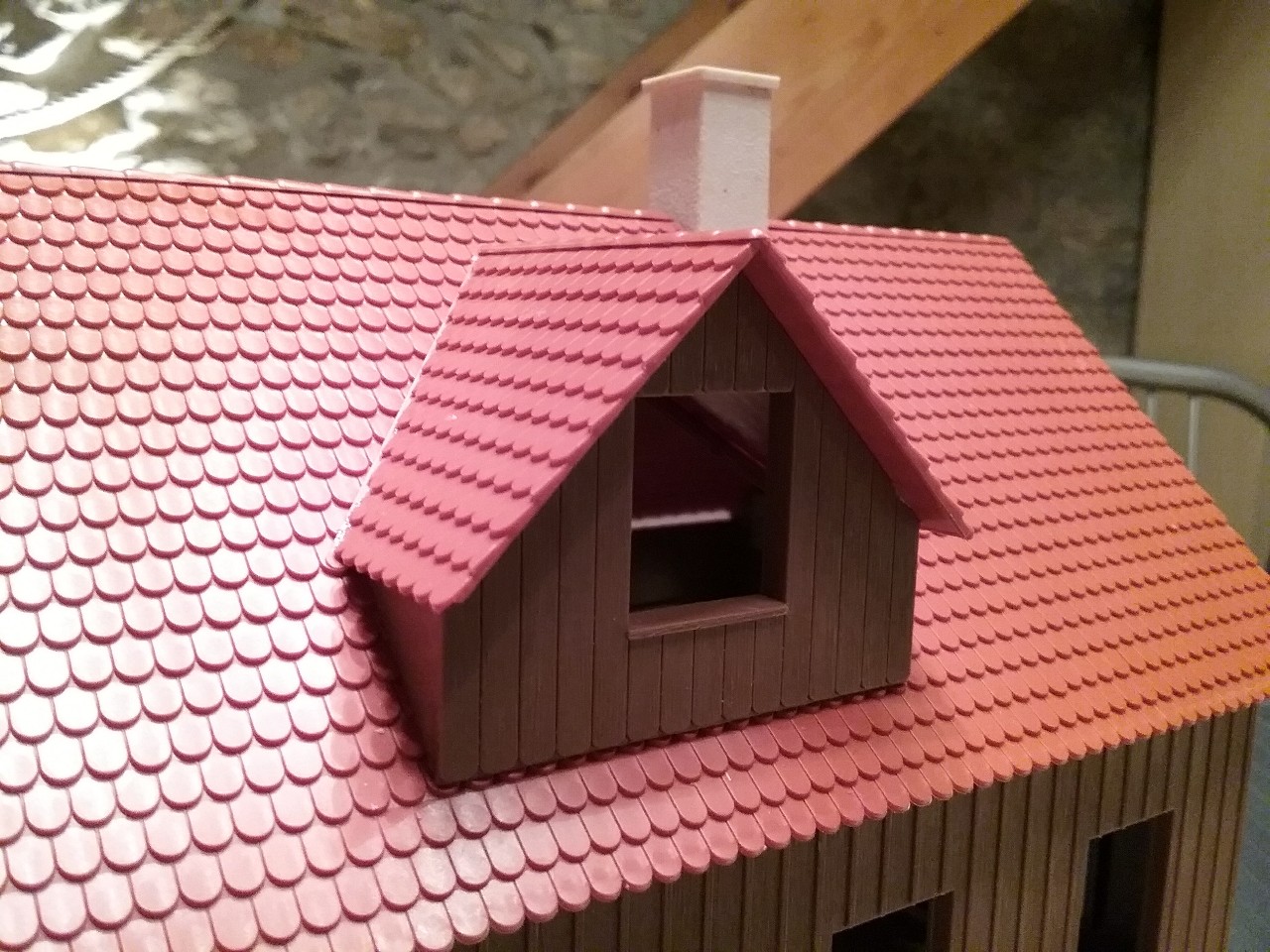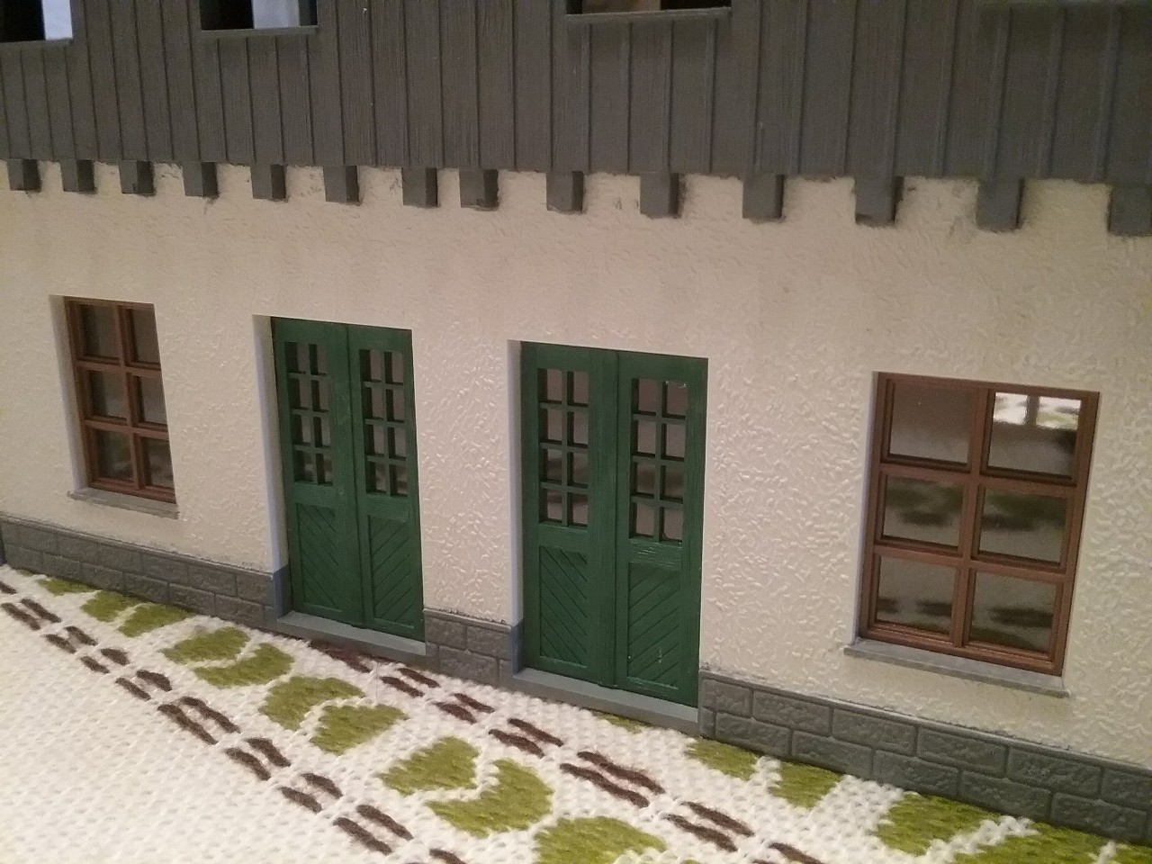 Pose des dernières fenêtres après patine des murs et toitures de ma gare de construction perso en O (1/45)