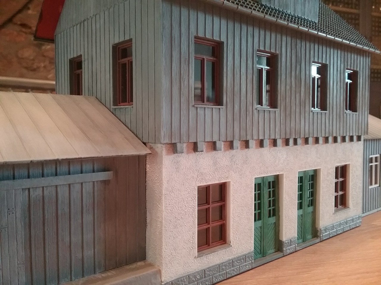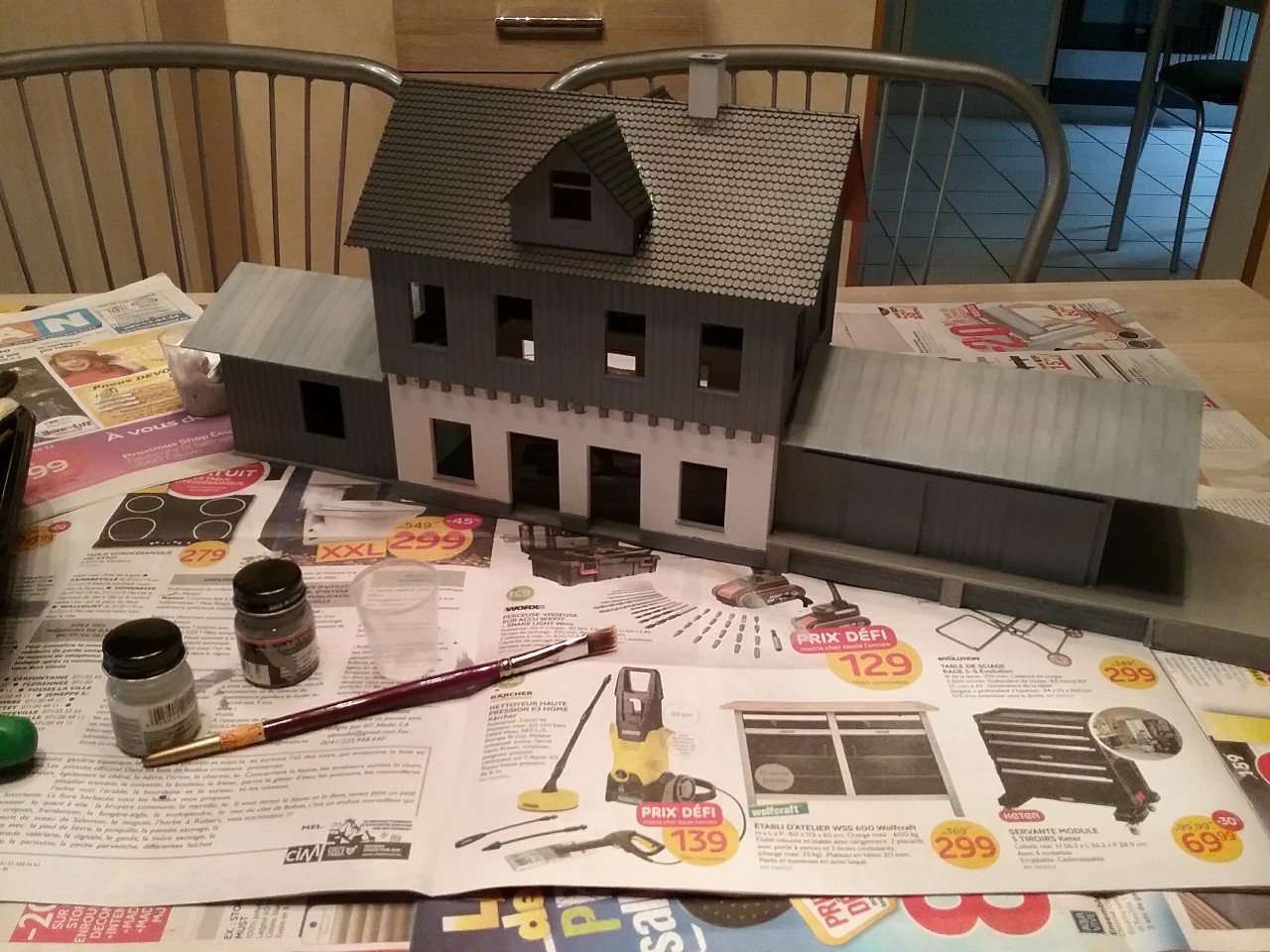 Nouveaux travaux sur ma gare de construction perso en O (1/45) ! Peinture des murs et toitures et début de la patine des annexes. Ce n’est que le début…