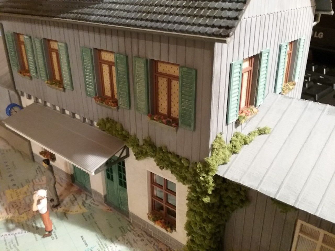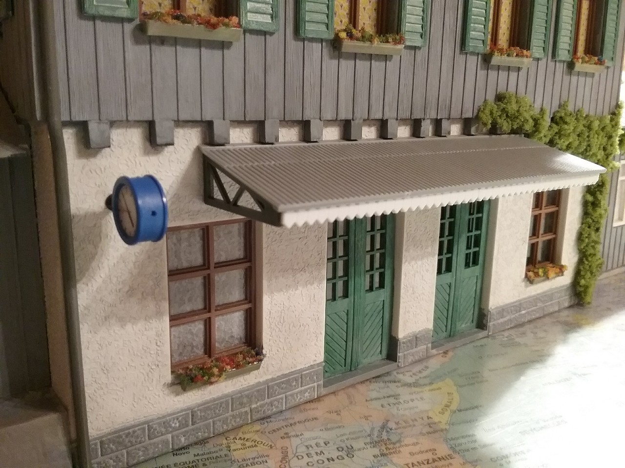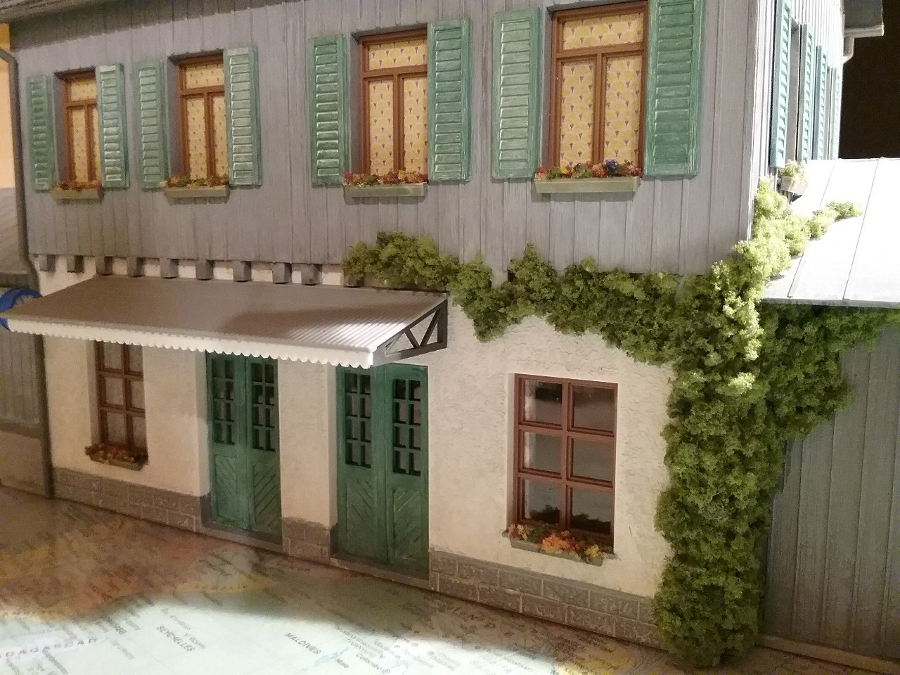 Marquise, fleurs, lierre … finitions diverses de ma gare, bref … content du résultat !