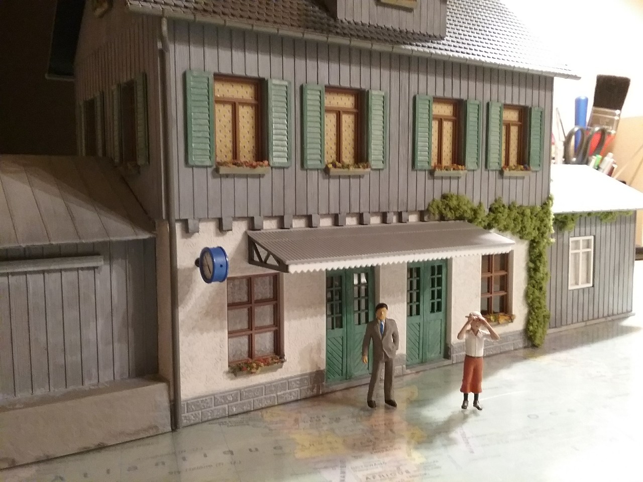 Il n’existe aucune référence Manu, c’est un modèle unique que j’ai créé personnellement en s’inspirant de photos de vraies gares de type Forêt Noire.