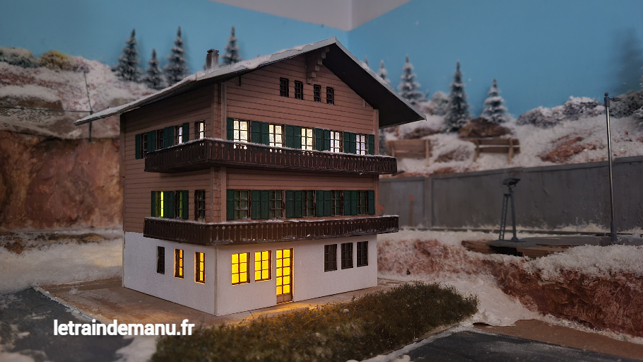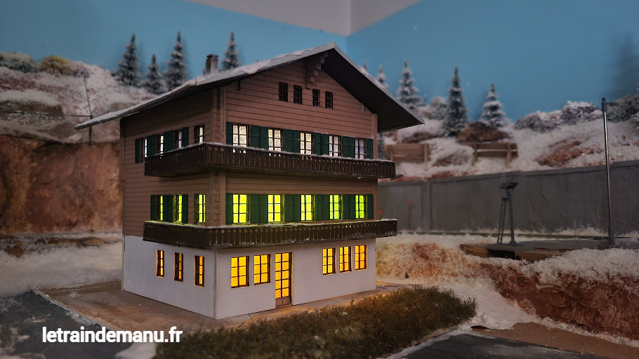 Épisode 300 – Premier bâtiment du module hivernal, le chalet des Grisons nécessite un éclairage intérieur.