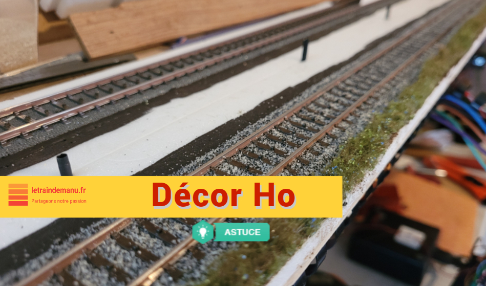 L’espace entre le ballast et le quai est ensuite comblé de graviers versés à sec puis collés à la colle vinylique. On peut ajouter quelques touffes d’herbes.