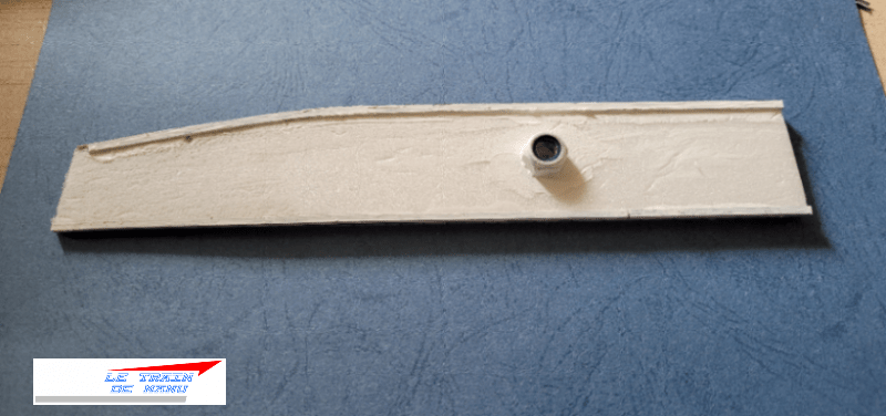 Sur mon ancien quai, j’avais recyclé d’anciens boulons de 10 pour en faire des jardinières. Je reprends le même principe pour mon nouveau quai. Ils sont peints en blanc. Là encore, une peinture en bombe serait plus pertinente. Puis ils sont collés à la cyanoacrylate Colle21 sur le quai en Dépron™.