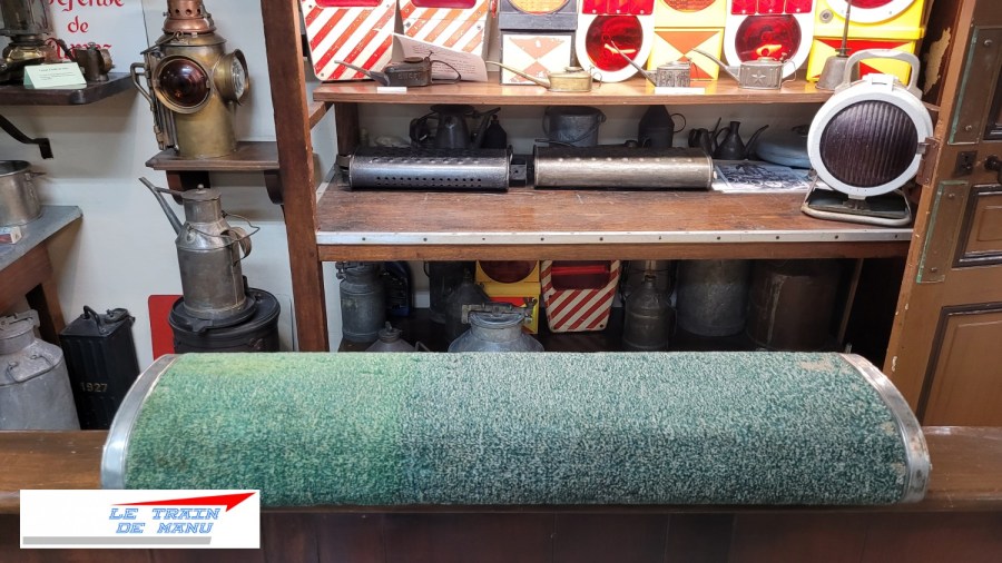 On trouve par ailleurs des objets moins connus comme cette bouilloire destinée aux clients de la 1ère classe. Ancêtres du chauffage, ces bouilloires furent d’abord chargées au charbon avant d’être remplies d’eau bouillante. On imagine le travail nécessaire pour préparer ces objets de confort pour chaque compartiment.