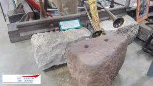 letraindemanu (2739) Musée du cheminot Ambérieu-en-Bugey dé en pierre servant de traverse sur la première voie ferrée française entre Andrezieux et saint-Etienne en 1830