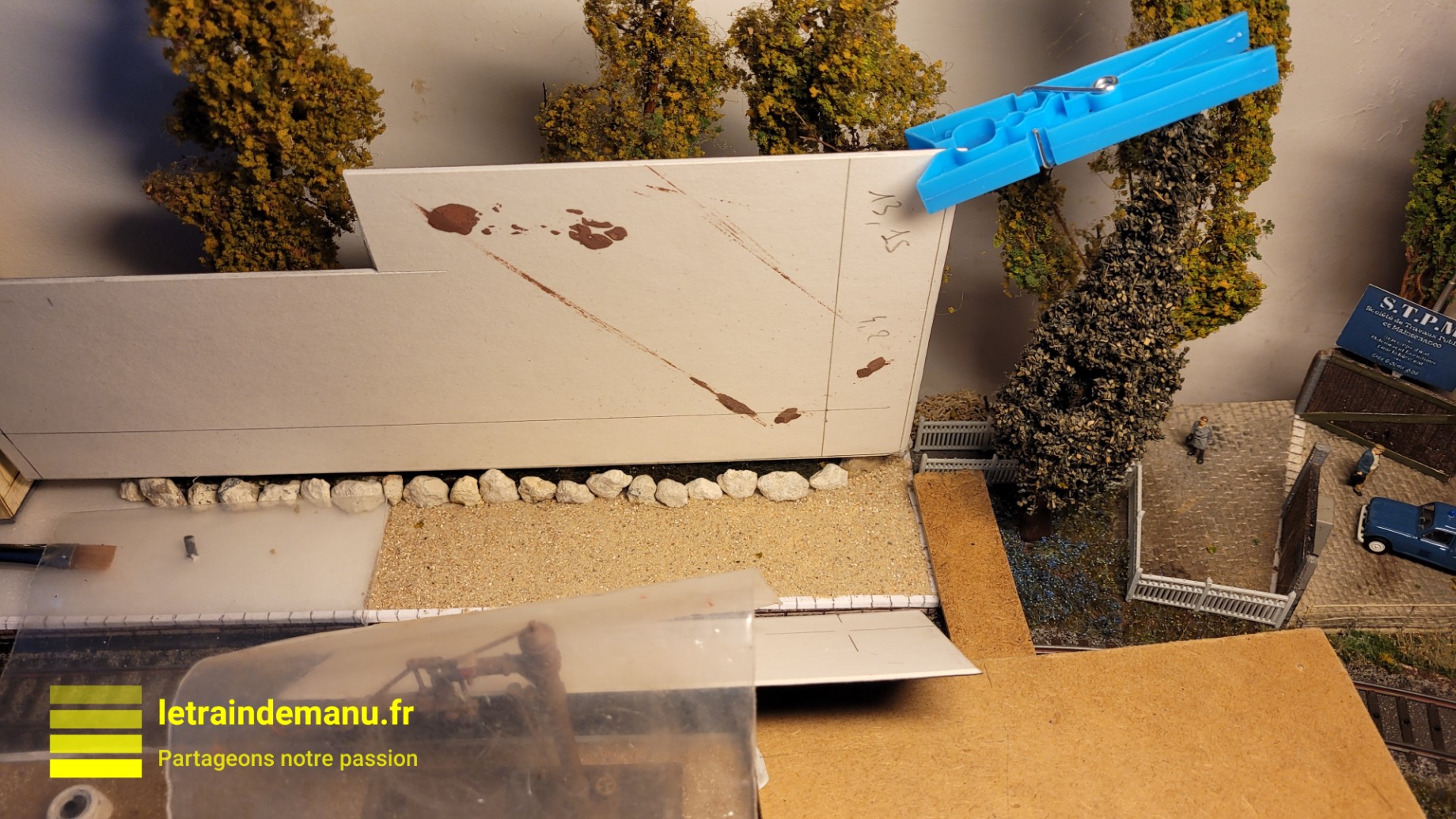Après avoir implanté le demi BV PLM 3 portes de chez Bois Modélisme, il est temps d’aménager le quai principal de cette gare rurale.