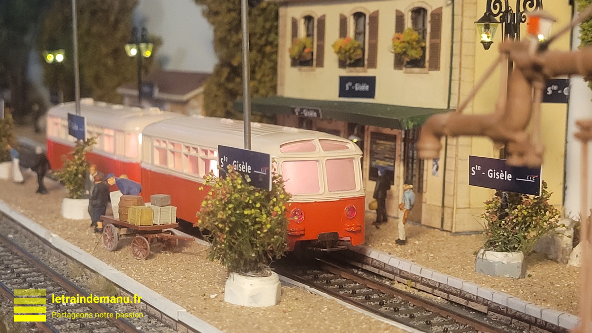 Photo 2909 à 2915 : l’autorail Schienenbus de Vincent de passage dans la gare de Sainte-Gisèle. Source : letraindemanu.fr
