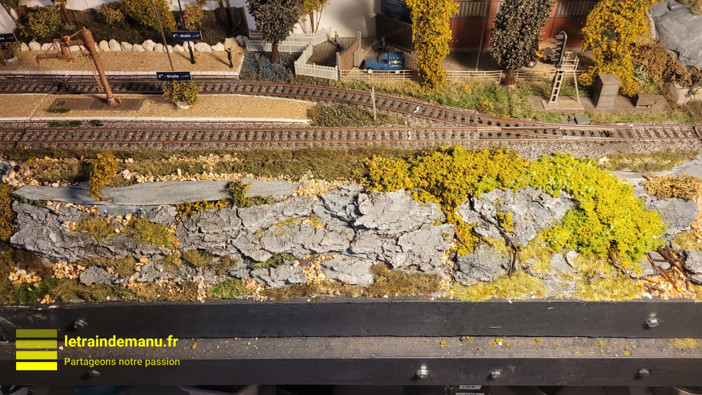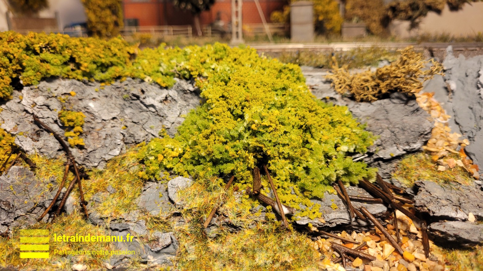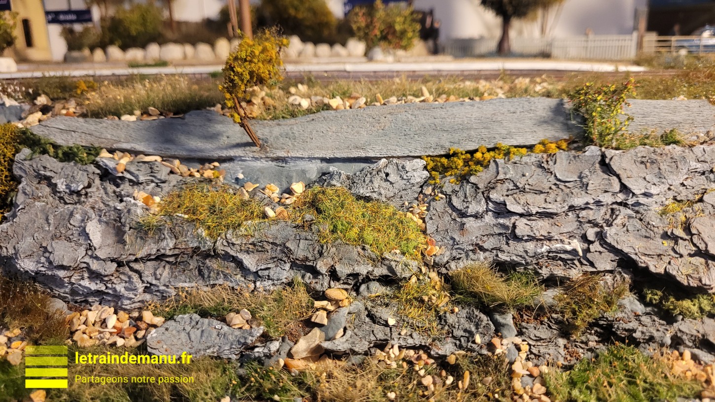 Photo 2946 : Réseau ho, Graviers et petits rochers obtenus en tamisant du sable naturel. Source : letraindemanu.fr