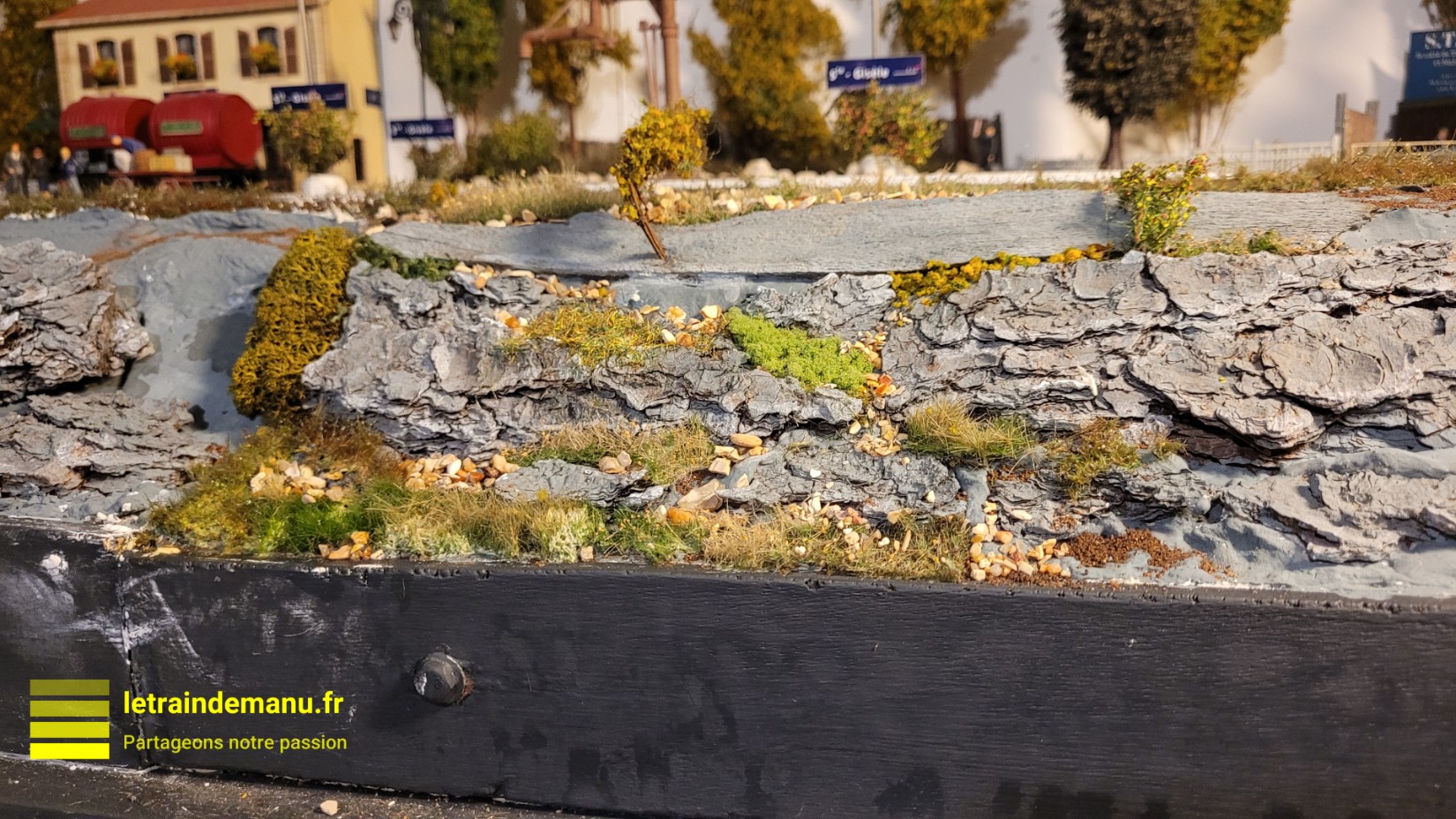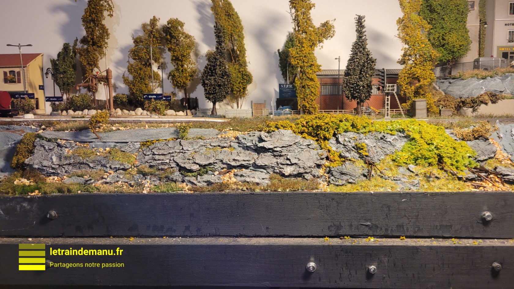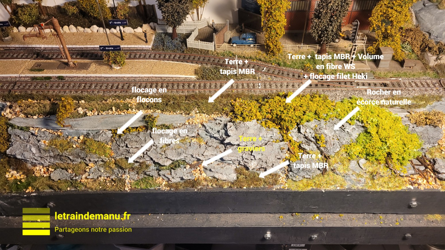 Photo 2946 : Réseau ho, Graviers et petits rochers obtenus en tamisant du sable naturel. Source : letraindemanu.fr
