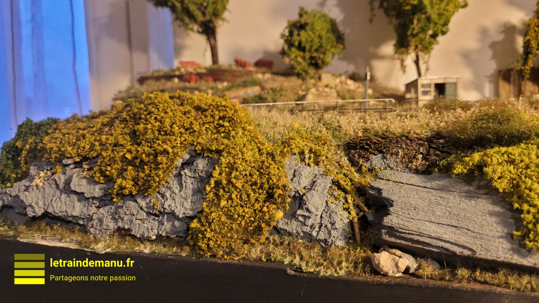 Photos 2948 à 2957 : Végétalisation du relief négatif sur les Modulinos 01 à 04 du réseau Ho. Source : letraindemanu.fr