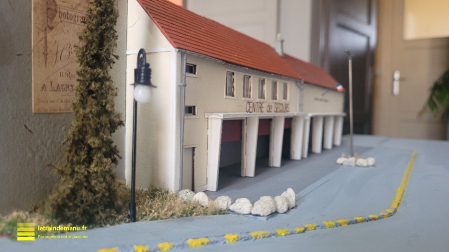 Photo 3104 : Pose des trottoirs et intégration du centre de secours. Source : letraindemanu.fr