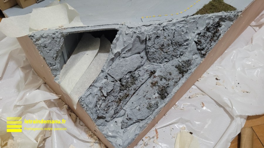 Photo 3136 : Travaux de décor sur le réseau HO, le relief négatif du module 05 Source : letraindemanu.fr