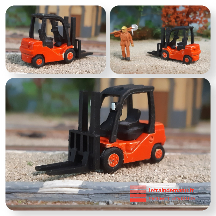 Photo 3165 : Chariot élévateur en Ho réalisés par Keta Boulet. Source : Keta Boulet pour letraindemanu.fr