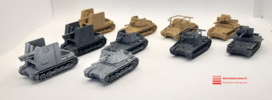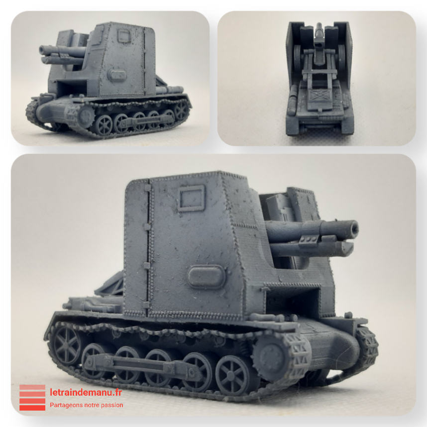 Nos amis se sont également lancés dans l’expérimentation d’engins militaires. Il s’agit principalement de canons et chars de la Première Guerre mondiale. Les dimensions de ces machines sont donc bien plus petites que dans notre imaginaire, ce qui peut prêter à confusion et laisser penser que ces machines sont traitées à une échelle plus petite. Ces premiers tanks n’avaient parfois que deux personnels : un pilote et un artilleur. Mais c’est bien du Ho. Outre composer une rame militaire de l’époque I, certains de ses véhicules pourraient malgré tout figurer sur un réseau plus contemporain, sur la place d’une mairie d’une ville ayant eu un contingent, près d’un monument aux morts ou à l’entrée d’un musée.