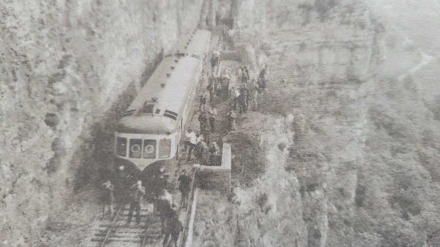 Photo 3172 : Au-dessus du perré vers 1944.  Source : La Gazette du train de Martel, N° 01, 2023