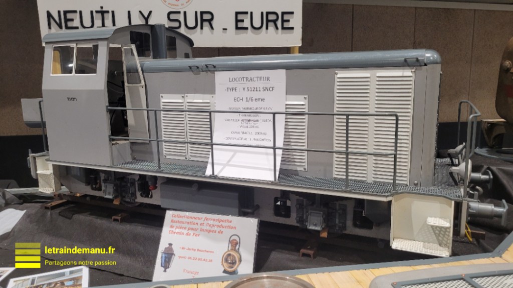 L’association du Petit Train à Vapeur de Neuilly-sur-Eure est une structure qui gère un train d’extérieur d’environ 400m de voie principale pouvant transporter des passagers. Présente à Dreux, elle exposait, entre autres, un locotracteur thermique Y51211 à l’échelle 1/6ème construit par J. Baucheron, ainsi qu’un wagon à plateforme surbaissée Uaik également à la même échelle, pour voie de 7 pouces 1/4 (189 mm).