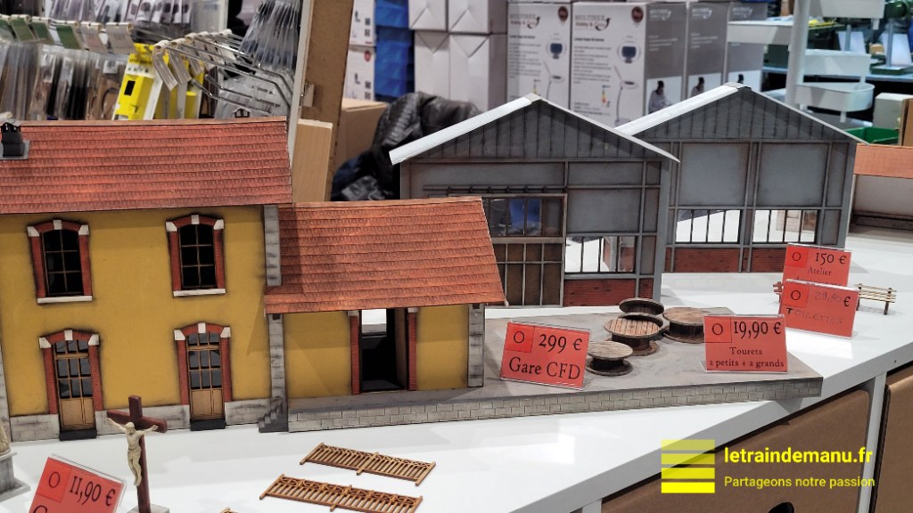 En nouveautés HO sont proposés : une gare CFD, un poste d’aiguillage SNCF de Mouchard et de sympathiques ateliers en versions bâtiment complet ou en versions fond de décor.