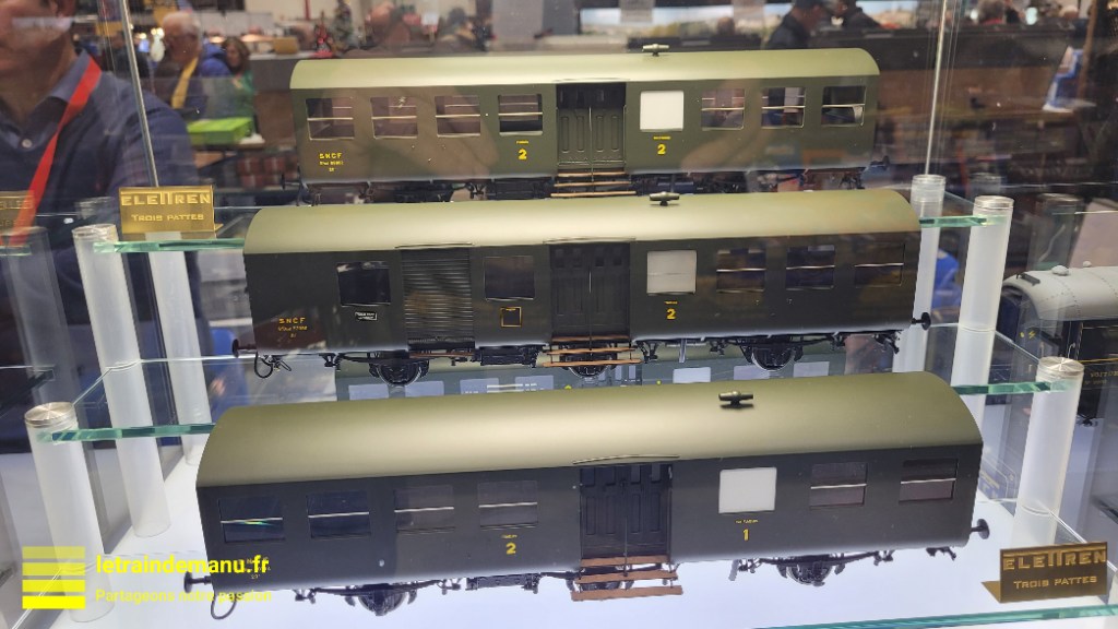 Comme nouveauté, Elettren propose des « Trois-Pattes« , ex-voitures du PLM. Trois variantes sont proposées : B8, A3B4 et B4D. Ces pièces sont réalisées en laiton soudé, ressorts à lames, détails en bois et peinture par encres. Rayon minimal conseillé : 180 cm.