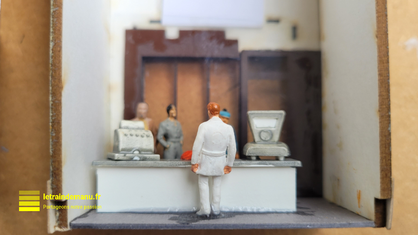Il s’agit ici de ma seconde expérience avec un produit Minifer, la première étant le centre de secours. En réalité, c’est ma première expérience Minifer pour un bâtiment avec vitrine commerciale. Il s’agit de la référence MNF27. Annoncée à 6 x 4 x 11,5 cm, ses dimensions au sol sont en réalité plus réduites : 5,5 cm de large, 3,3 cm de profondeur et 11,5 cm de hauteur.