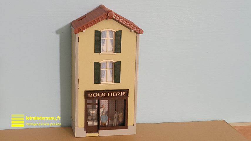 Enfin, mais c’est un souci de taille, le prix de vente est mal positionné par rapport à la concurrence. Cette boucherie a été achetée 29€ à Saint-Mandé 2024. La gamme Architecture & Passion propose des immeubles en bas-relief, plus hauts et plus larges, pour un prix à peine supérieur. A titre de comparaison, la boucherie A&P à trois étages avec 9 fenêtres (3×3), large vitrine et porte d’accès aux étage est affichée à 34€.