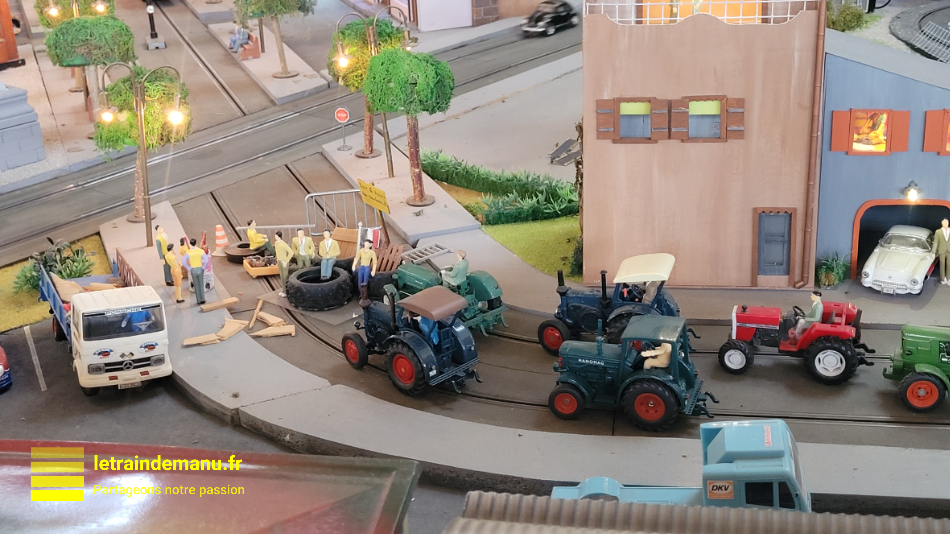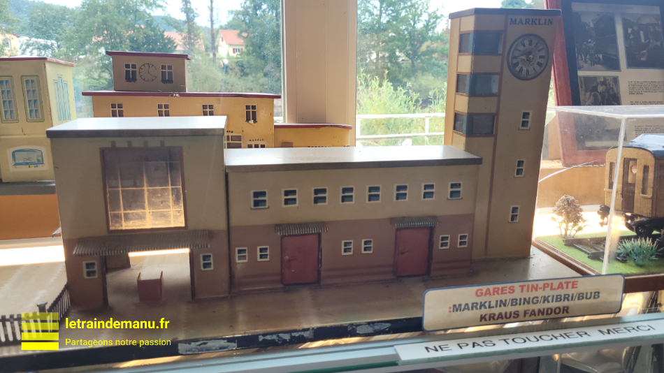 Sont également présentés des trains jouets ancien des années 20 et d’après-guerre (Bing, Bud, Kibri, Lionel, Märklin, Plank,…), des bâtiments en tôle emboutie (Carette, Märklin, Plank, Fandor,…), des grues à grandes échelles, des appareils de voie,…