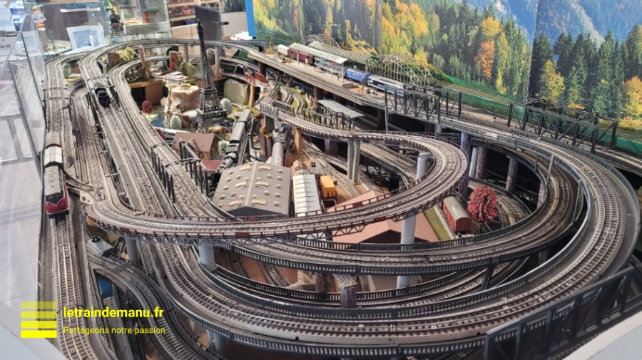 Un autre réseau Märklin Ho est construit sur 11 niveaux indépendants mais interconnectables. Curieux. Ici point de décor, mais le plaisir du jeu et de circulations multiples sur une faible surface. Les fortes rampes ne font même pas peur aux robustes moteurs de l’emblématique marque allemande.