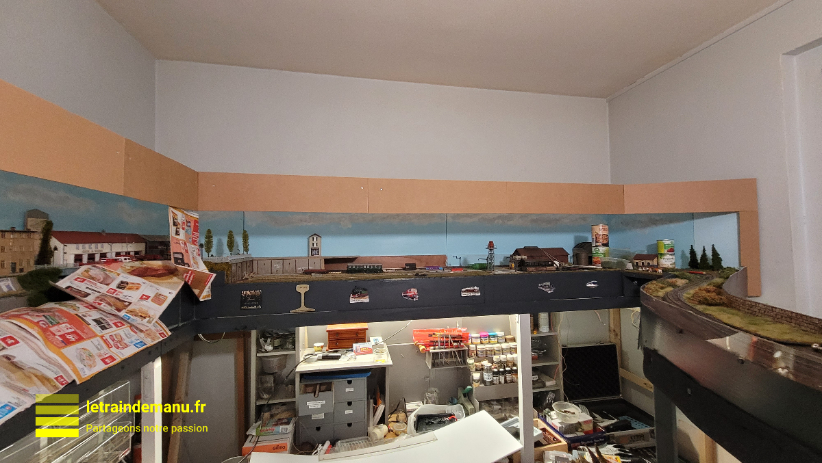 Le nouveau réseau est construit sur la base de modules plus petits, avec fond démontable. Plus légers et donc faciles à déménager si besoin. Mais il manque la toiture et le bandeau enjoliveur haut.