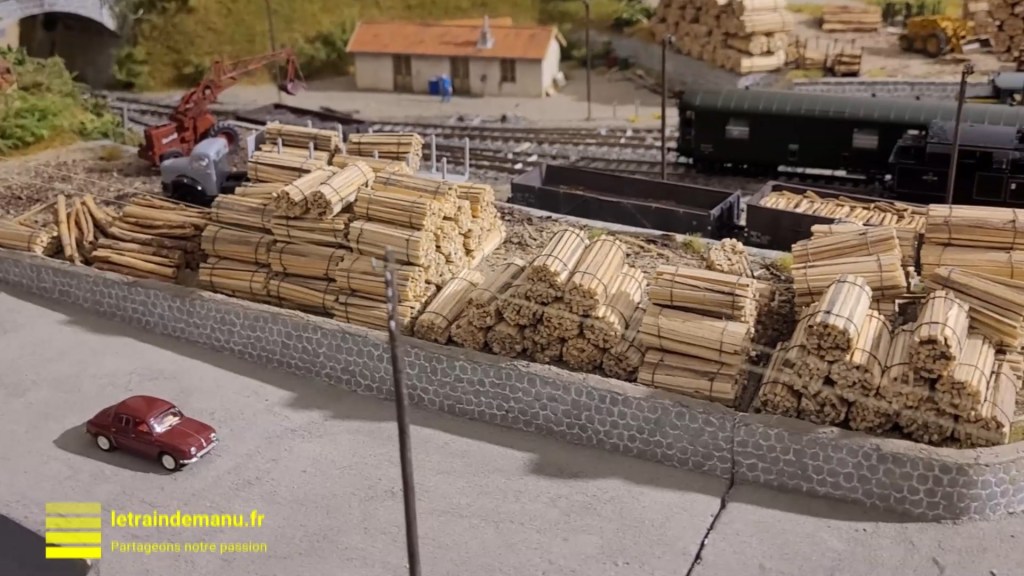 Dunières était une grande expéditrice de bois. Tous le bois représenté sur le réseau est en bois naturel qui a séché plusieurs mois afin d’obtenir des teintes naturelles. Tout a ensuite été débité pièce par pièce pour constituer quelques 120 ballots de 1,5cm de diamètre et environs 3 cm de long.