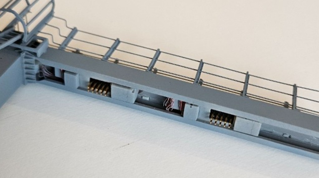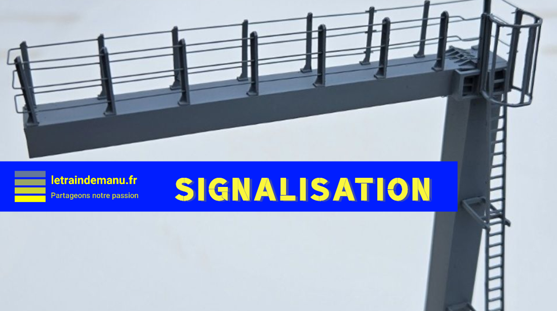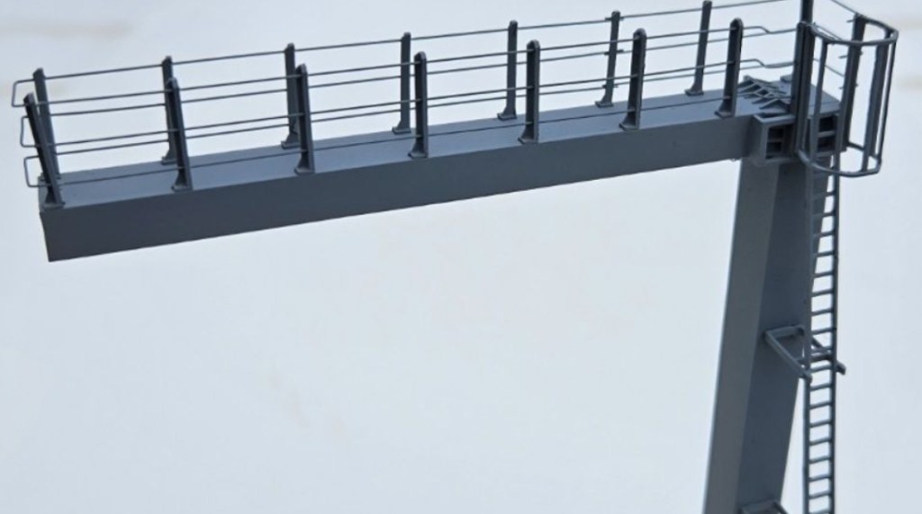 Comme les signaux de la marque, la potence est réalisée en résine. Les rambardes sont en fil inox de 0,3 mm.