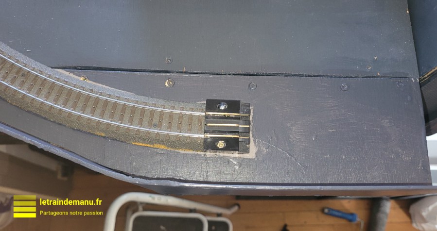 J’ai donc fait le choix de profiter du bouclage du circuit et d’utiliser la longue voie de remisage arrière pour la prolonger et l’équiper du connecteur.