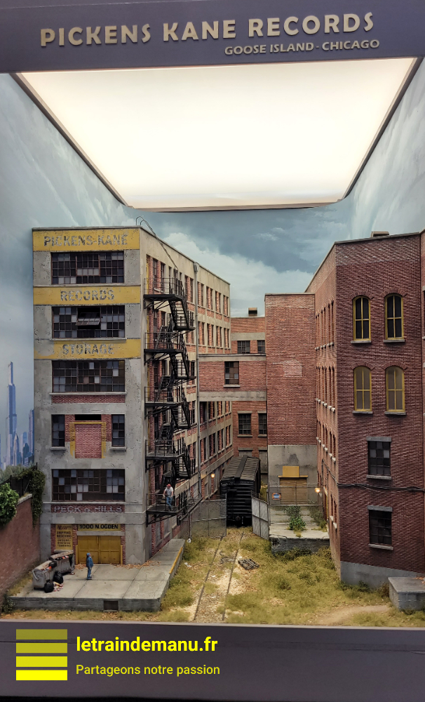 Le réseau 21 rue des Haies, de Vincent Cleren, se distingue particulièrement par son réalisme urbain et la qualité de ses patines. Installé sur deux niveaux, sa voie de parade en tranchée au premier plan, donne du relief à cet ensemble urbano industriel très dense.