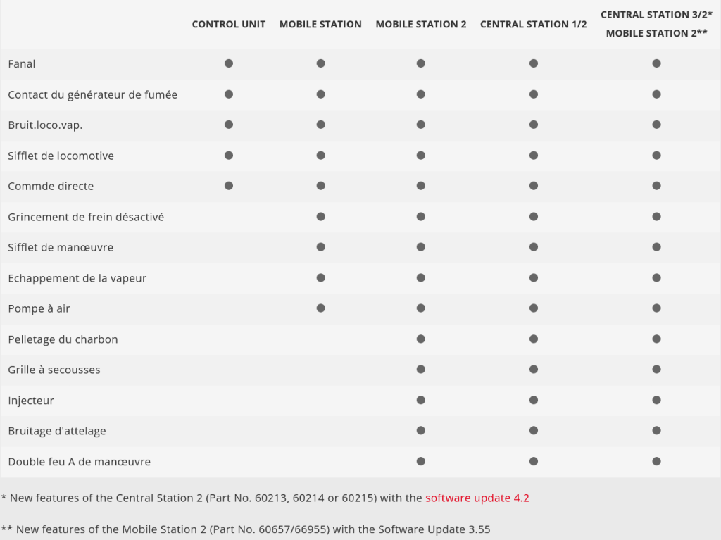 • Ces nouvelles fonctions sont disponibles uniquement avec la Central Station 2 à partir de la version micrologicielle 3.0.