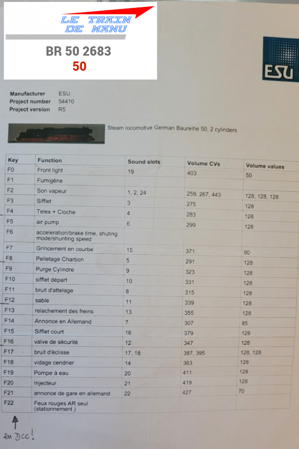 - Décodeur ESU DCC et générateur de bruits dans le tender.